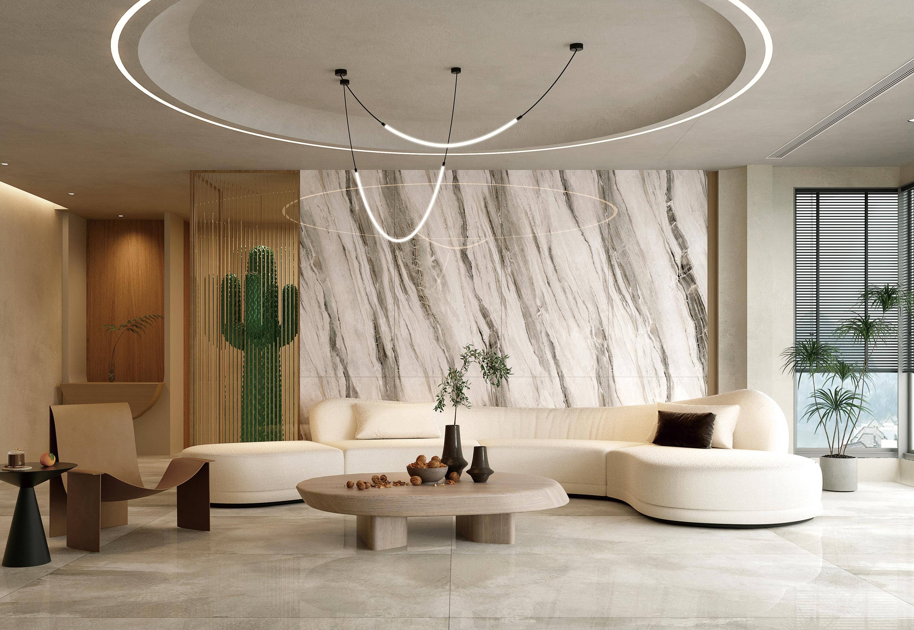 模仿在億年地殼運(yùn)功過(guò)程中形成的自然石紋,飽滿清晰、蜿蜒曲折,成不規(guī)則狀,每一條紋理都是獨(dú)一無(wú)二,其細(xì)膩逼真的紋理將再現(xiàn)又一個(gè)真“石”神話,與空間相得益彰,不經(jīng)相同的紋理流出絲絲縷縷的自然清新之感。(任意無(wú)限連紋)
