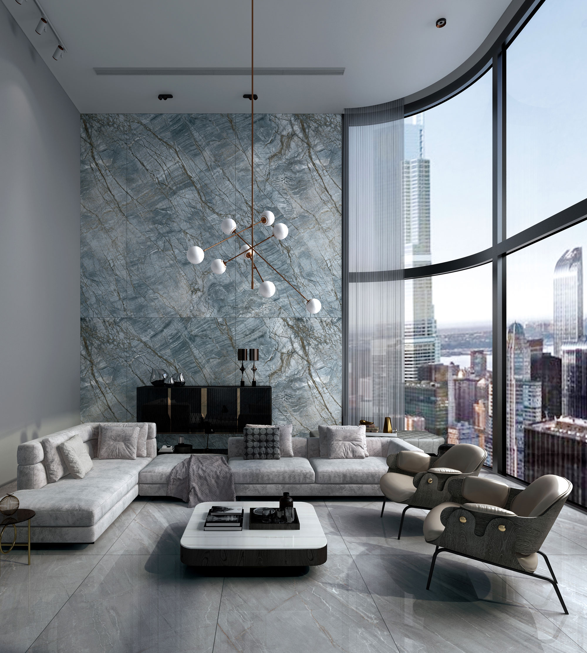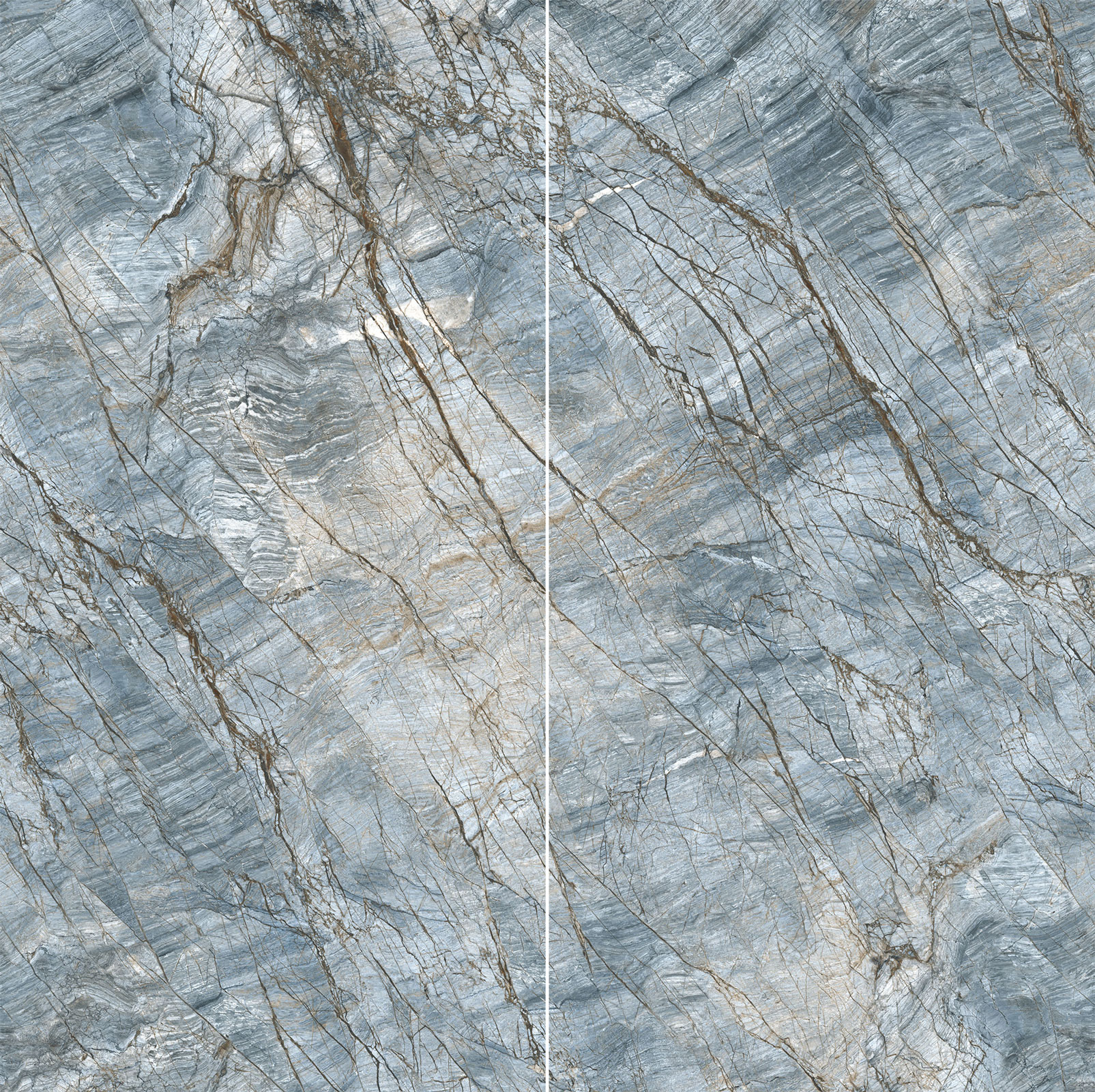 從北大西洋中脊澄凈空明的瓦塔納冰川汲取靈感,集合了冰川的色澤和紋理,還原冷冽氣息的圣山水晶,像是把水下根脈和冰河湖,一針一線地縫進巖板上。清冷的紋理色彩猶如生命般堅毅,斑駁交錯的根脈散紋在平面盛開。親近其中,如同一道天然的灰藍色屏障縈繞在側,連呼吸都前所未有的暢快。